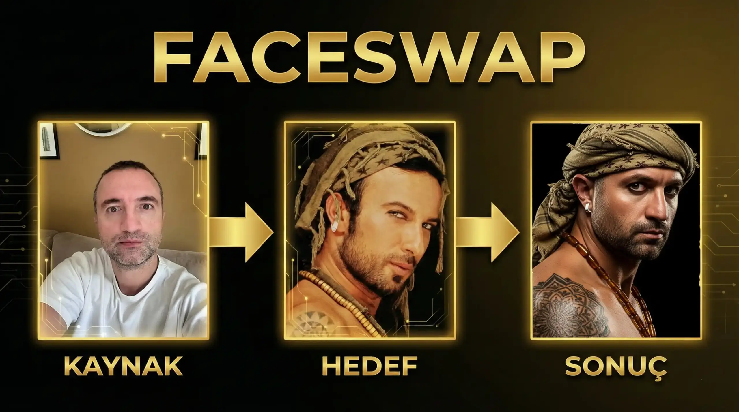 Not : Bu uygulama %100 yüz aktarımı şeklinde çalışmaz. Kaynaktaki kişinin hedef görseldeki ortam, kıyafet, saç, makyaj, ışık koşulları, poz gibi özelliklerini detaylıca taklit edecek şekilde yeni bir görsel oluşturur.